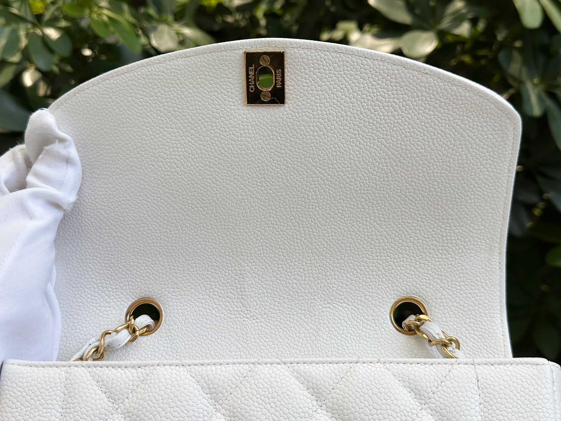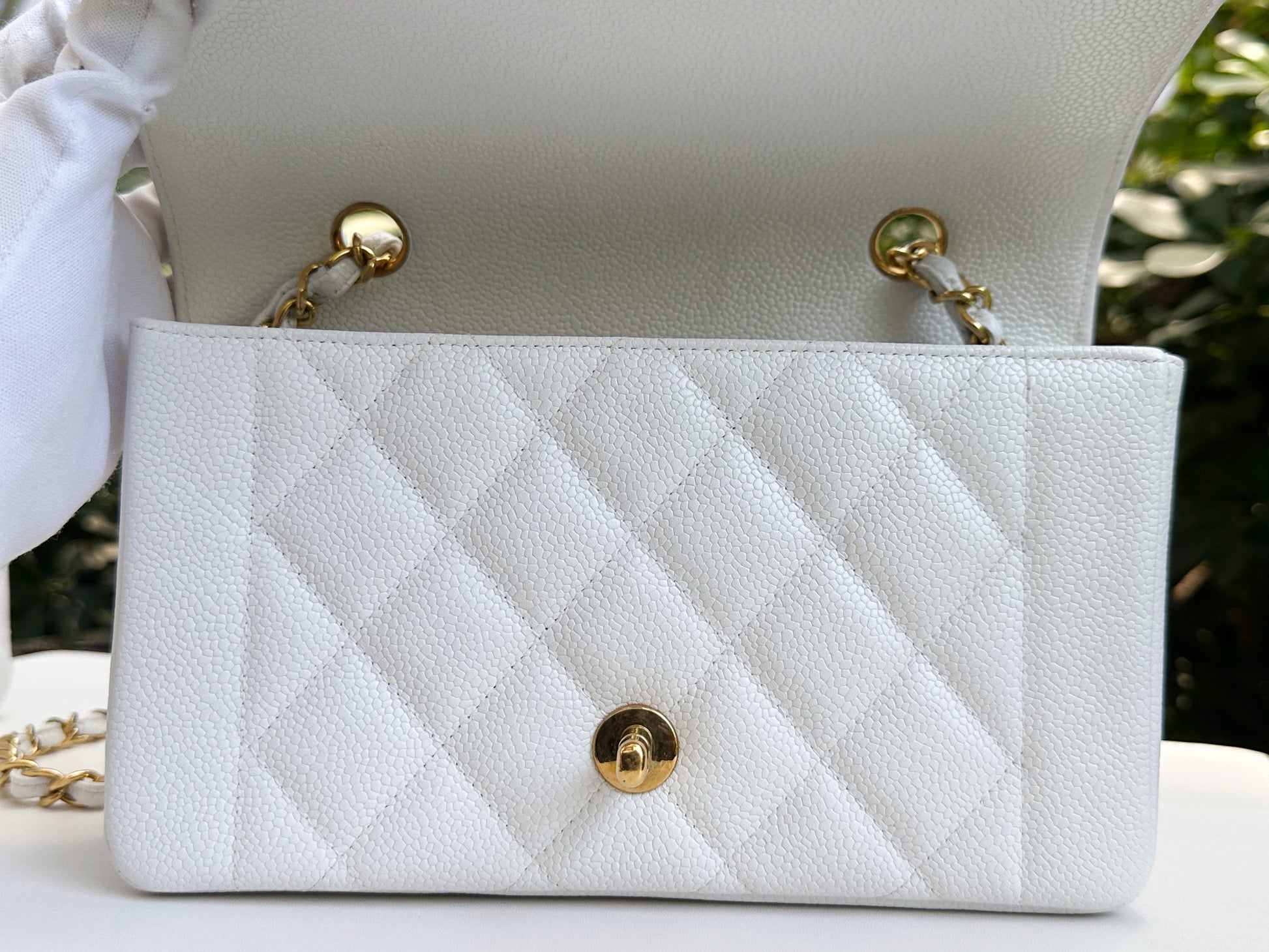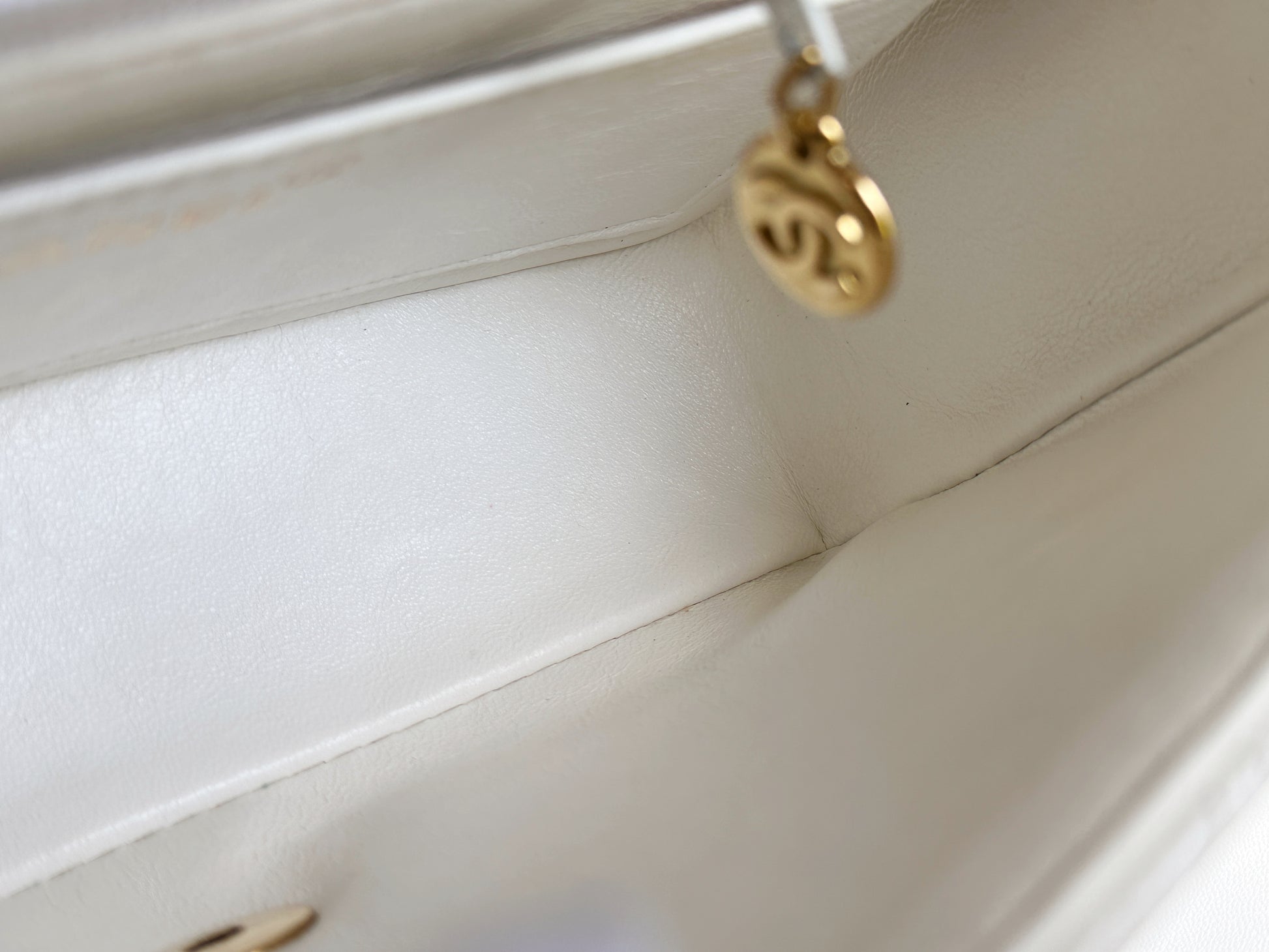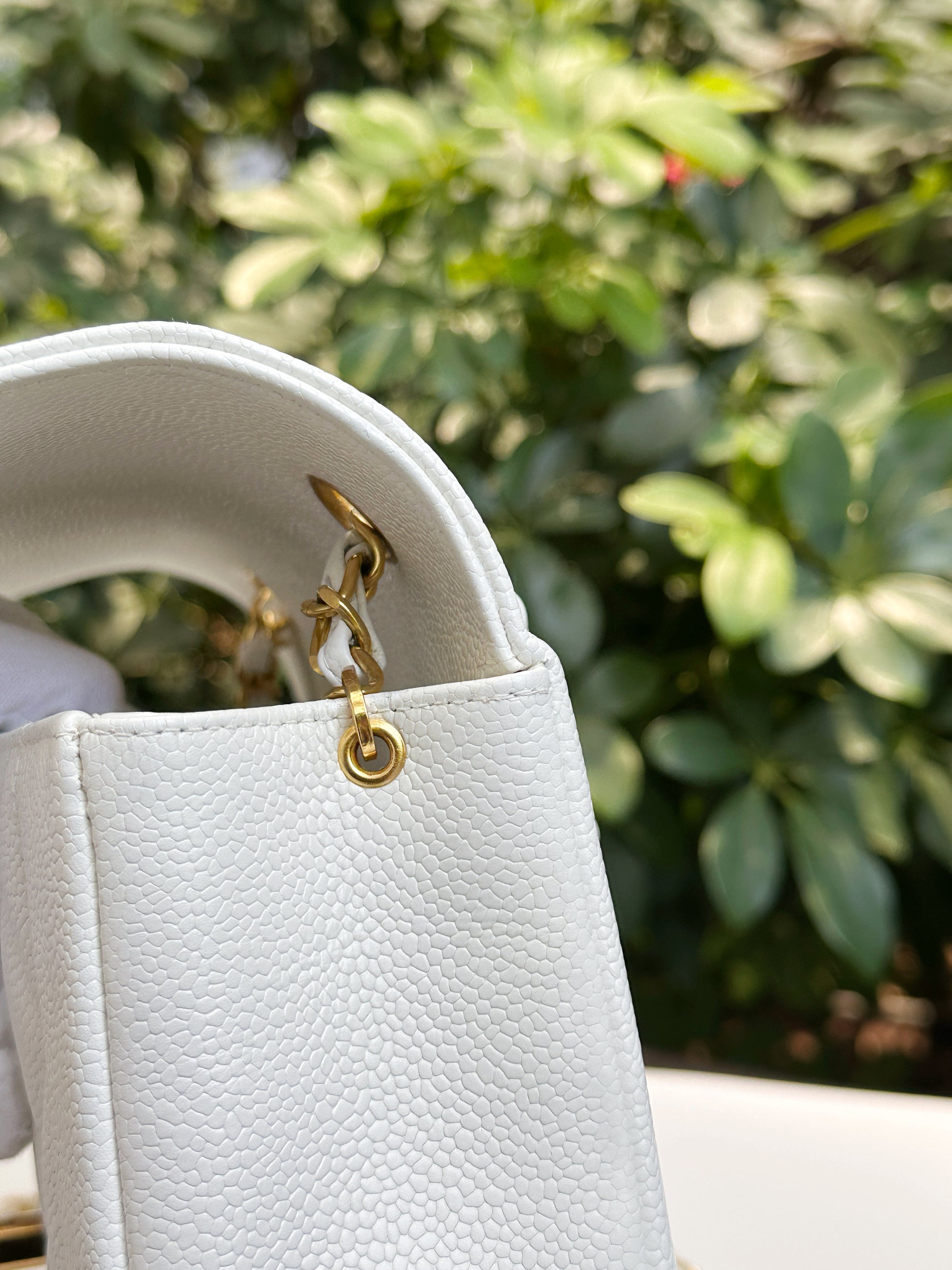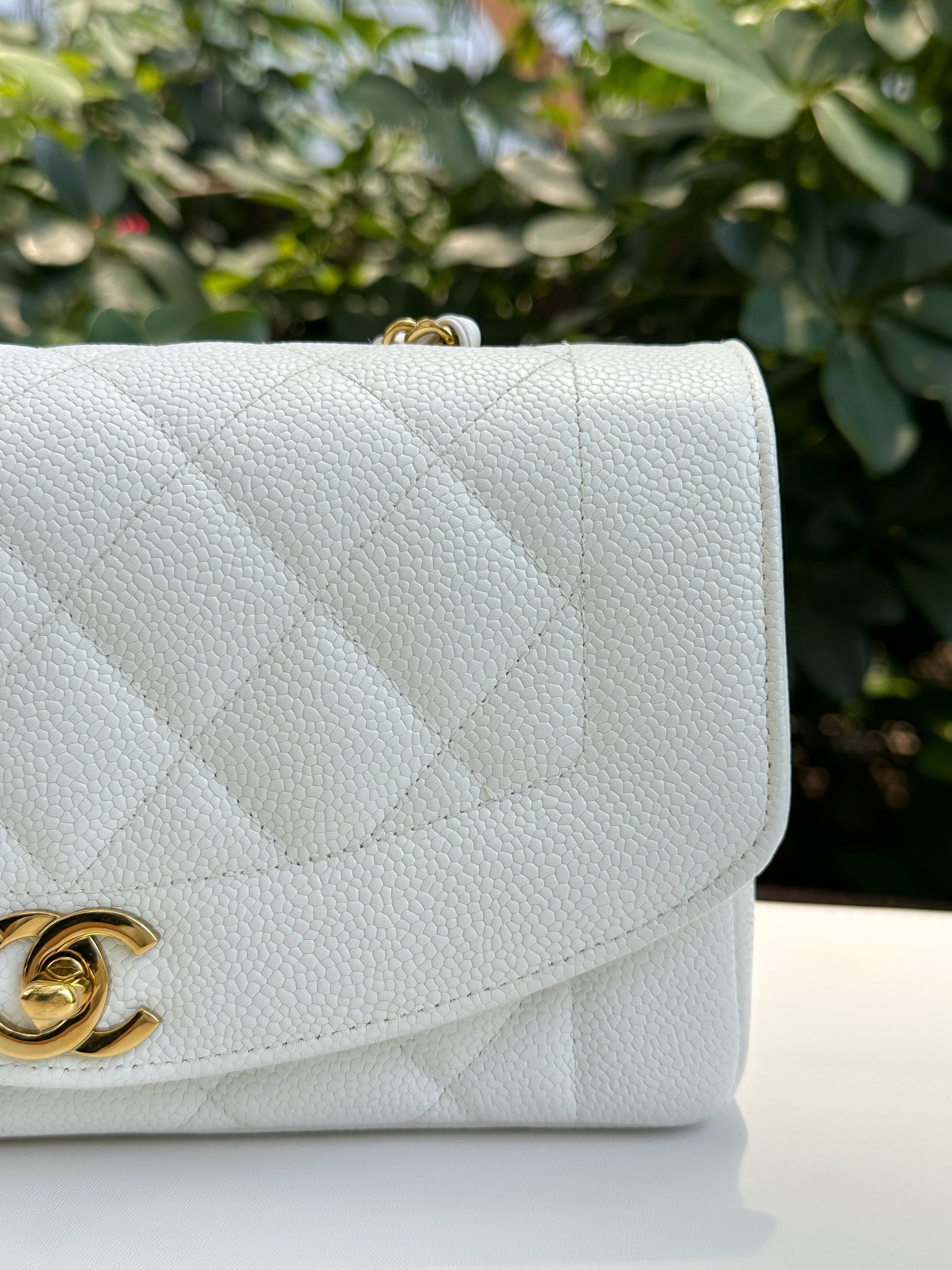 Chanel Vintage Quilted Diana Flap Bag Caviar White 33 holo card